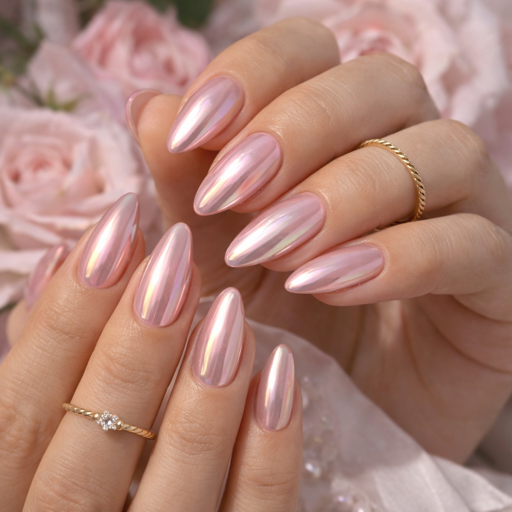 Pearly, reflective perfection inspired by seashells and mermaids—elegant and eye-catching.”