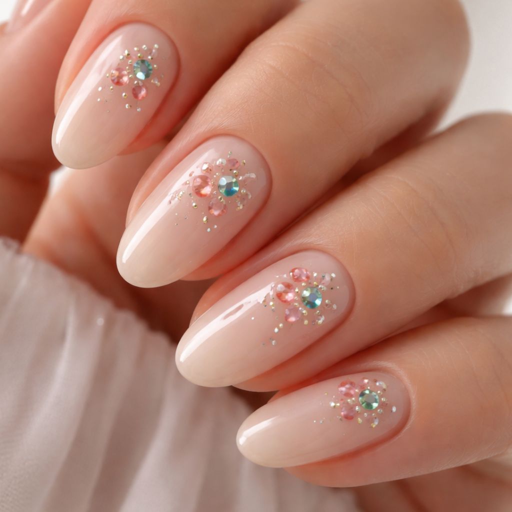 Rhinestones arranged into tiny flower shapes—perfect if you want sparkle without going overboard