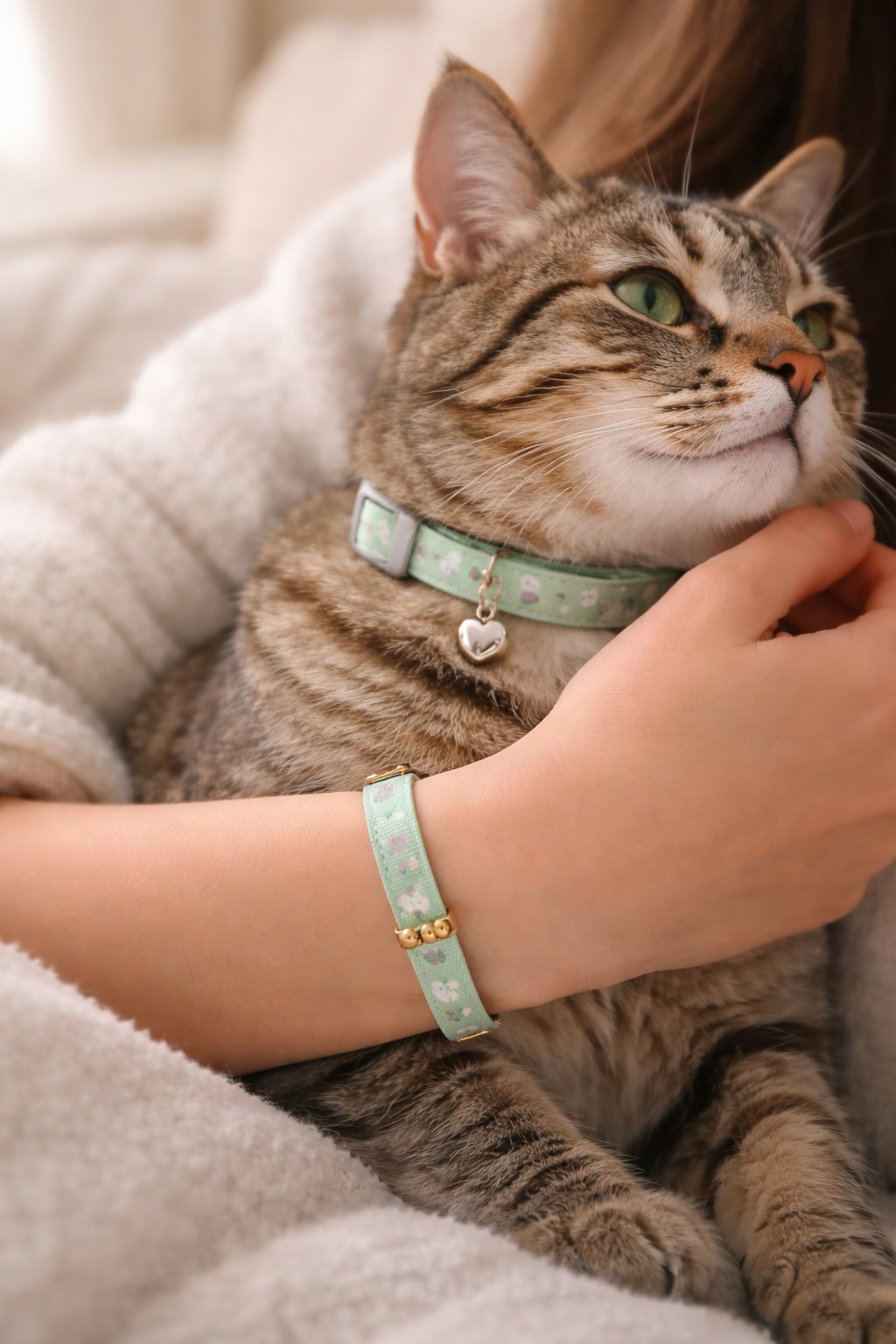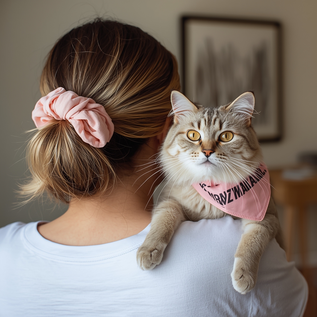 There’s something undeniably adorable about matching with your cat. A bandana and scrunchie set lets cat moms express their bond in a subtle but stylish way. It’s perfect for casual days, quick photos, or even just lounging at home together.