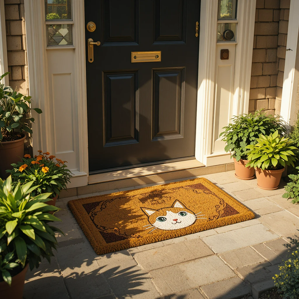 A cat-themed welcome mat sets the tone the moment someone enters the home. It’s fun, functional, and honestly… very accurate—because we all know who really owns the house.